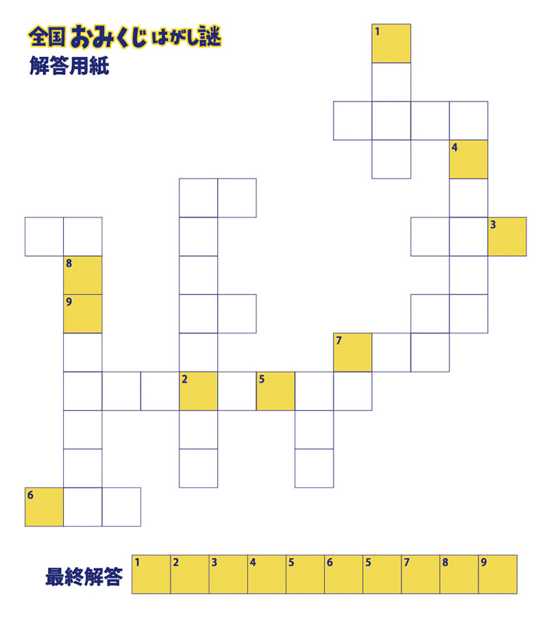16個のワードを下記のパズル盤面に埋めると、最後の答えが導ける。
