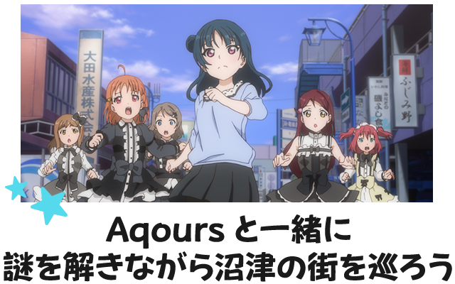 このイベントは、「ラブライブ!サンシャイン!!」をテーマにした沼津の街を観光しながら謎を解き進めていき、次の目的地を探していく体験型ゲーム・イベントです。