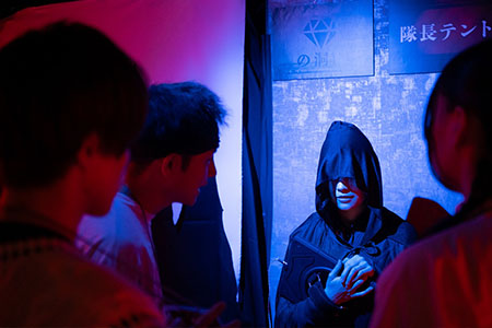 テント内が暗くなる、緊迫した音が流れるなどのホラー要素のある表現や、一部の方が不快に感じる可能性のある表現(グロテスクな表現等)が含まれるため、クトゥルフ神話が持つ人智を超えた非日常体験を楽しめますが、びっくりする演出が苦手な方向けにも「びっくり演出軽減グループチケット」をご用意しています。